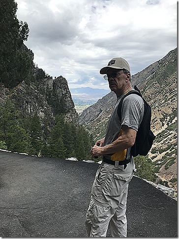 (1-3) Timpanogos Trail views, (4) Bill spots a Bobcat on the mountain; Siobhan is disappointed at the quality of his find, (5-6) Trail views, (7) Entrance to the cave, (8) Hopeful hikers waiting for a peek inside.